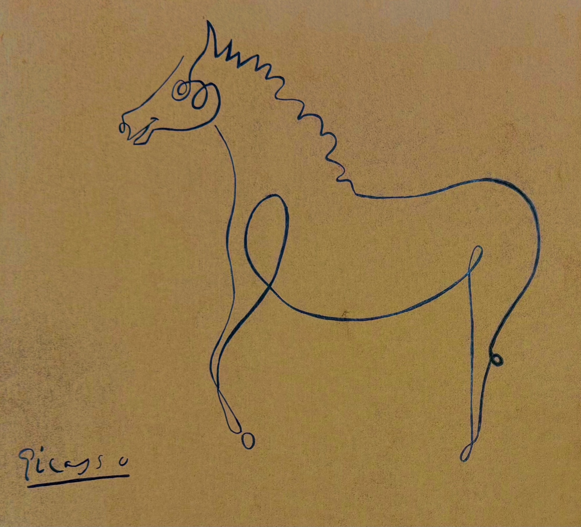 With a single, continuous line, Picasso conjures the essential form of a horse, transforming the animal into an elegant calligraphic presence. Executed in 1924, this drawing reflects the artist’s neoclassical interlude, when clarity of line and economy of means took precedence over Cubist fragmentation. The horse’s body unfolds fluidly across the paper, balancing vitality with restraint, while subtle inflections in the line suggest motion, anatomy, and character. Chavel exemplifies Picasso’s extraordinary ability to distill complex subjects into their most expressive and immediate essence.