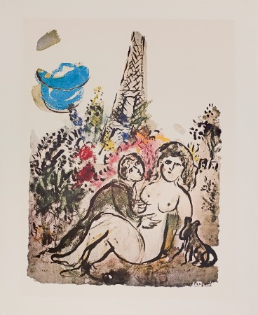 Due to Chagall’s love for Paris, and its famed symbol, La Tour Eiffel, where he got the freedom to do different paintings, he connects the two cities calling Paris his Vitebsk. In the same image, Chagall shows a goat, and a small skyline of St. Paul de Vence. Besides, there are biblical roots attached to it where the animals appear to be sacrificed. On one hand, the sacrifices are a sign of the atonement of sins, while the other hand, a symbol of harmony and purity. Chagall’s lithograph’s joyful, enthusiastic, and lively tone describes more on the second meaning, which is harmony and purity. Also, the use goats indicate Chagall’s lovers like it is the song of songs, a psalm of unity and love of fanatics with nature.