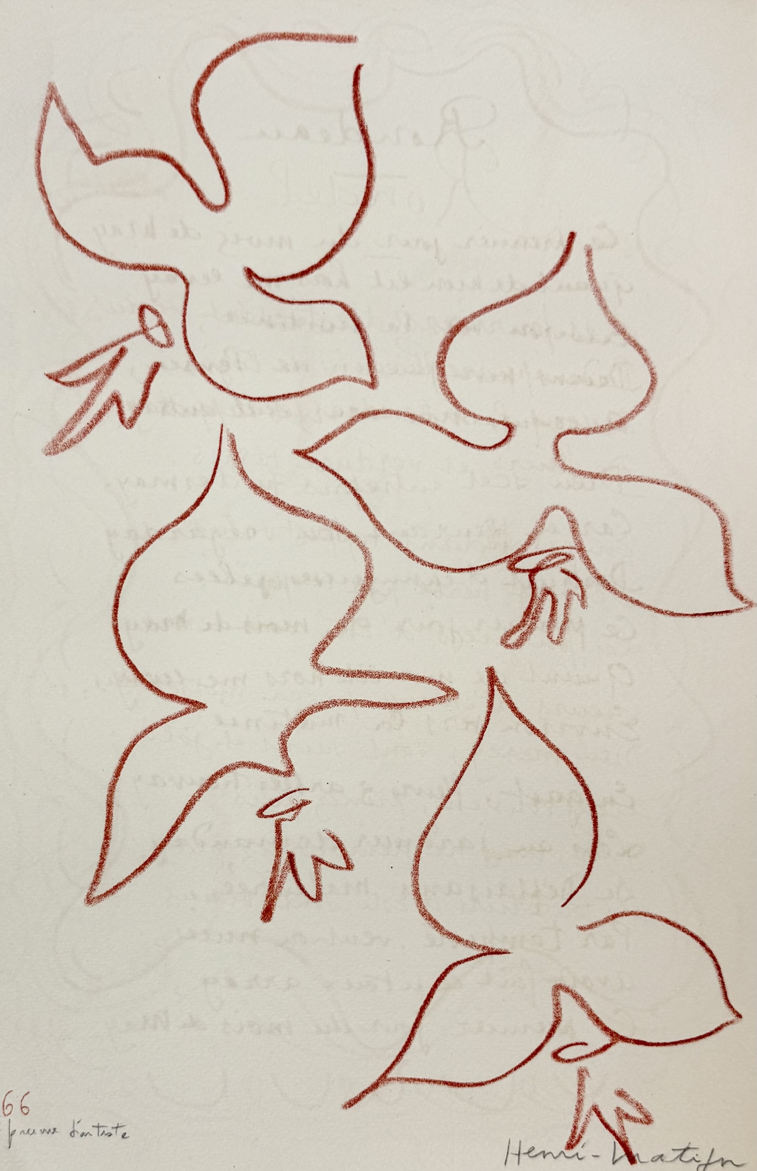 Henri Matisse created 139 illustrated books between 1914 and 1954. Of all the artistic contributions Matisse made over those 36 years, “Poemes de Charles d’Orleans” was one of the most personal and involved. Matisse threw himself into the work of Charles d’Orleans, a French poet (1391-1465). It was Matisse himself who chose to illustrate the text. He fell for the love poems that d’Orleans wrote for his true love while imprisoned in the Tower of London.