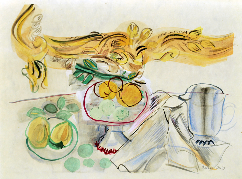 Through a traditional education at the Ecole des Beaux-Arts, the Impressionist landscapists, Fauvism, and even Cubism, count among Dufy’s many influences, it was not until 1920, that Dufy developed his own distinctive approach. Today, Dufy is regarded as one of the greatest ‘Post-Impressionist’ artists, carrying forth the tradition of painting the impression of light and color in a single moment in time. This collection of works from the Eau de Vie series is scarce and in pristine condition. The colors were applied using a hand application called pochoir, and the signature was hand applied by Dufy himself. Printed by Draeger Freres, Paris.