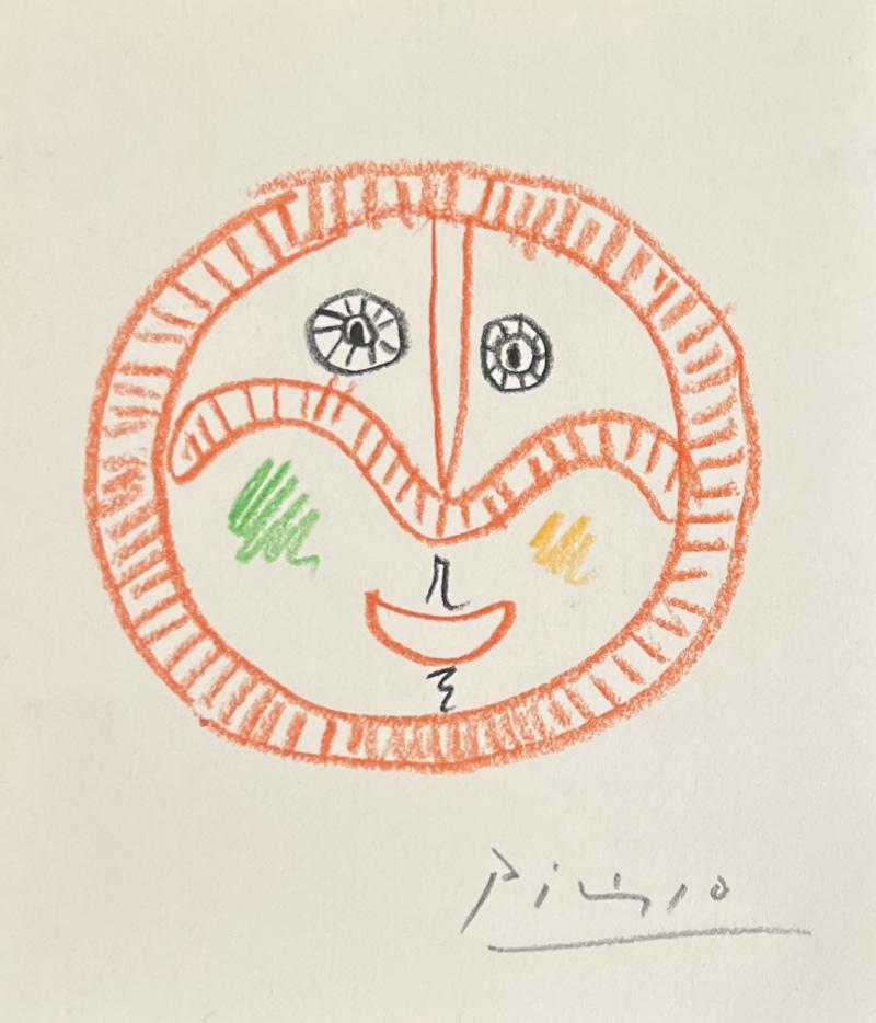 This drawing is possibly a study for a ceramic plate design. In 1946, while visiting the annual pottery exhibition in Vallauris, Pablo Picasso had the good fortune to meet Suzanne and Georges Ramie. The Ramies owned the Madoura workshop, a ceramics studio in Vallauris, where Picasso, who was eager to delve into a new medium, made his first venture into ceramics. He became so enthralled with ceramics that he decided to move to Vallauris to pursue his new passion. Picasso lived in the small, scenic town of Vallauris from 1948 to 1955. Picasso loved the malleability of clay and the fiery firing process, which transformed clay into stunning works of ceramic art. He experimented with varied shapes, forms, textures, enamels, and glazes, innovating the ceramics medium. Picasso’s approach was anything but conventional he tirelessly decorated plates and dishes with his favorite subjects, such as bullfights, women, owls, goats, fauns, and fish.